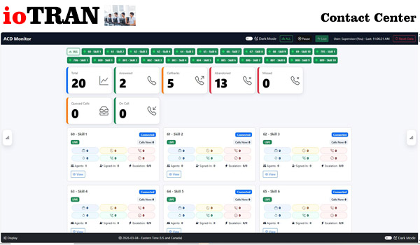 The ioTRAN Contact Center delivers a powerful, cloud-based solution designed to help businesses manage customer interactions with efficiency and precision. Built on a robust communications platform, it provides advanced Automatic Call Distribution (ACD) capabilities that intelligently route calls to the right agents based on customizable rules. Whether deployed in SaaS, hybrid, or on-premises environments, the solution offers flexibility to meet the needs of MSPs, service providers, and enterprise organizations seeking reliable and scalable contact center functionality.